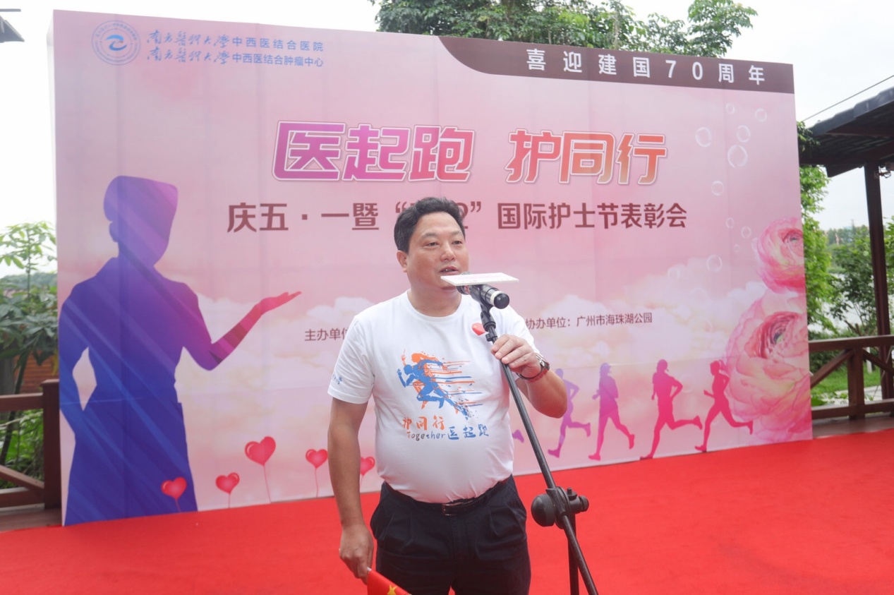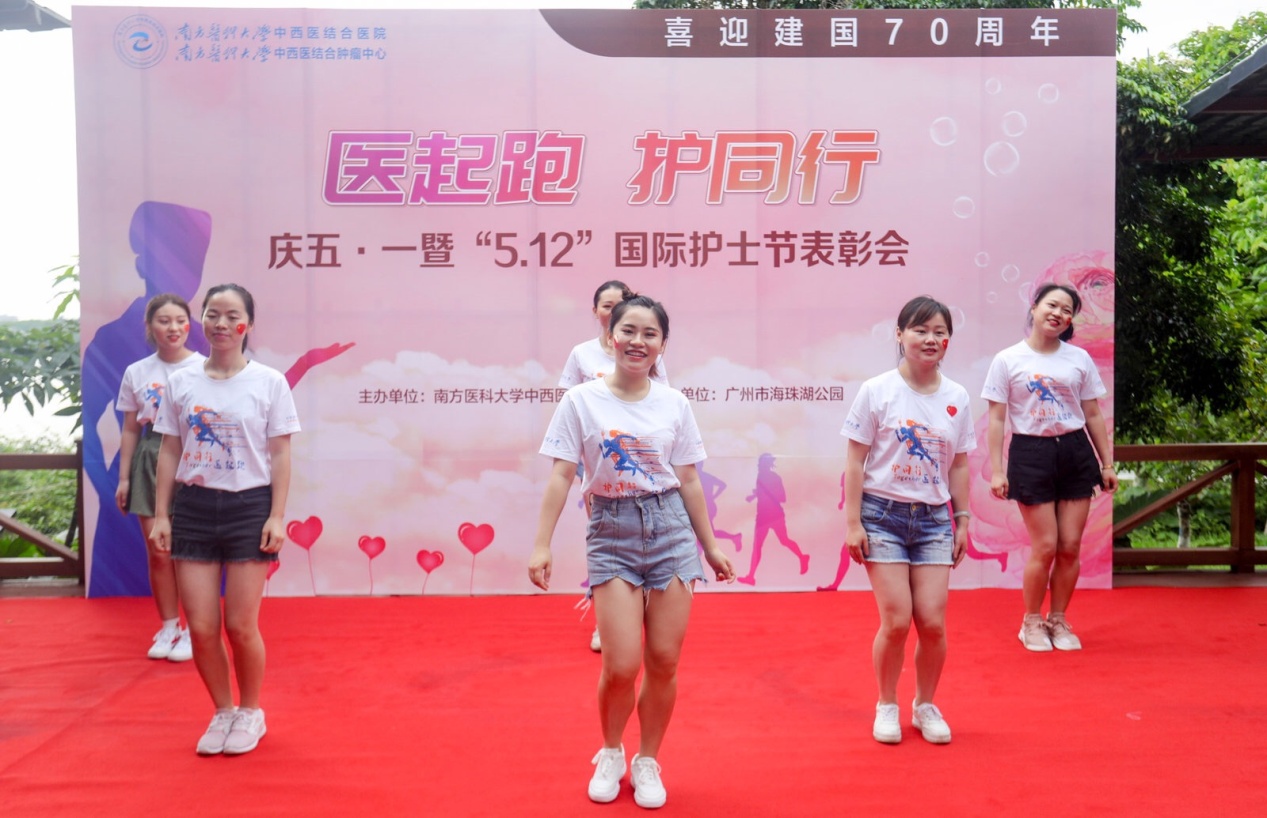 2019年5月1日,我院在广州市海珠湖公园举行“医起跑 护同行”健康公益团建活动,主要包括健身热舞、护士表彰、公益环湖跑及大型义诊活动,以致敬五四青年节、“五·一二国际护士节,向伟大祖国70周年华诞献礼,助力广东健康事业发展。医院领导、员工、志愿者近500人参与。