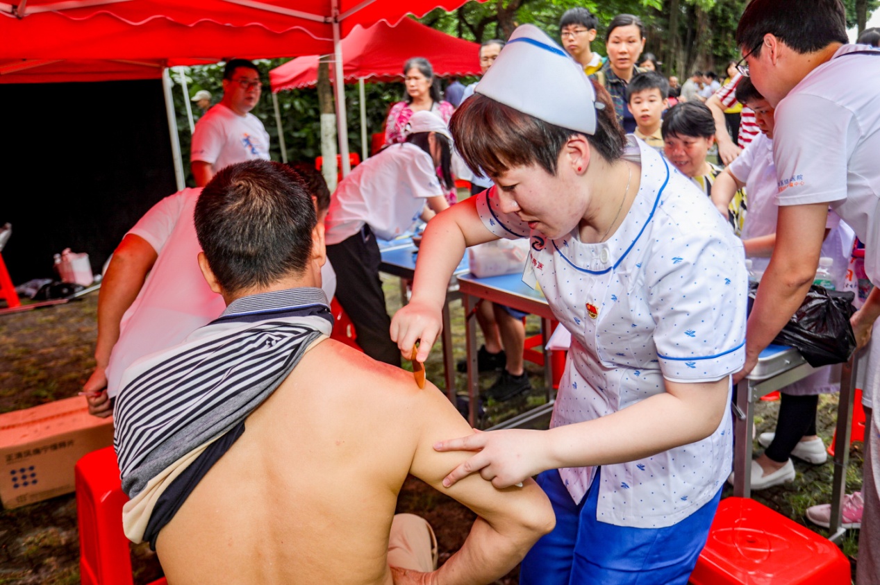 最后,医院在游客中心开展大型义诊活动,义诊现场为200余人次游客免费提供疾病咨询、健康管理、饮食指导、急救演练、测血压、铜砭刮痧、温灸刮痧、耳穴贴豆、掀针等服务,同时,为海珠湖游客免费送出医院研制的“馥馨凉茶”1000袋。