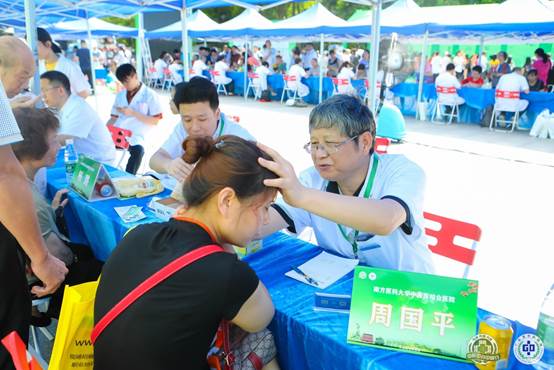 义诊现场,前来问诊的人群络绎不绝,专家们冒着酷暑,耐心地为群众解答各种健康问题。