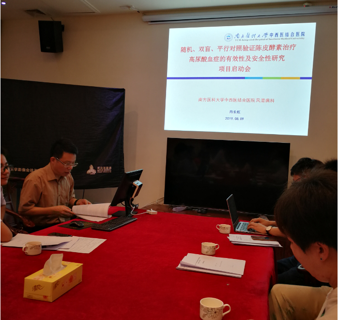 前期,主要研究者陈恒星主任、肖长虹主任及赵益业副主任受新宝堂公司委托后,通过大量地查阅研究资料,分别确定了先从陈皮酵素降尿酸、降血脂、降血压和调节胃肠道功效方面开展临床研究,制定了详细完善的研究方案,同时邀请省内同行专家广泛地交流,反复推敲修改,确定了最终的研究方案。经新宝堂公司确认,同时经过伦理委员会批准后,正式在我院按制定的研究方案开展陈皮酵素在临床功效方面的研究工作。