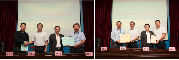 会上,严冬书记、李爱民院长与科室主任代表签订了党风廉政建设责任书和廉洁自律责任书、安全工作目标责任书。