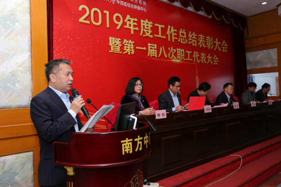 大会在庄严的国歌中拉开帷幕。院长李爱民发表讲话,他代表医院班子向大会作了2019度年度工作总结,部署2020年工作并宣读《南方医科大学中西医结合医院章程》报告。潘清川副院长作了《2019年度经费决算情况》、《2020年经费预算方案》报告。