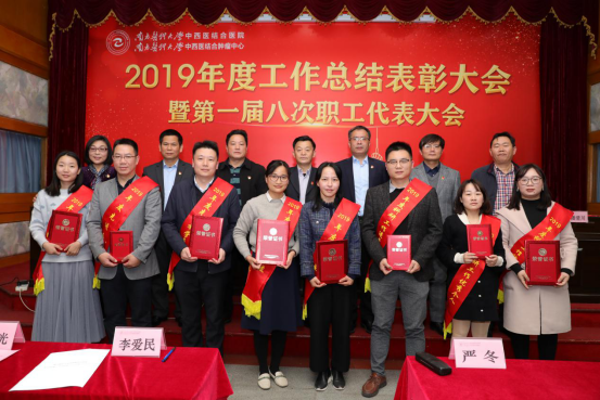 会上,彭康副院长宣读关于表彰2019年度先进单位和先进个人的通报。朱晓光副院长宣读2019年度医疗工作表彰事宜、2019年三甲复审先进单位和先进个人、2019年医保管理先进科室和先进个人的通报。马镇国副书记宣读关于表彰2019年度工会先进集体和优秀工会积极分子的通报。潘清川副院长宣读关于表彰2019年度教学先进单位及优秀个人的通报、2019年度科技奖励的通报。穆俊分管院领导宣读关于表彰2019年度获得较高荣誉和显著成果的集体和个人的通报。全体院领导为年度受表彰的单位、个人颁发荣誉证书。