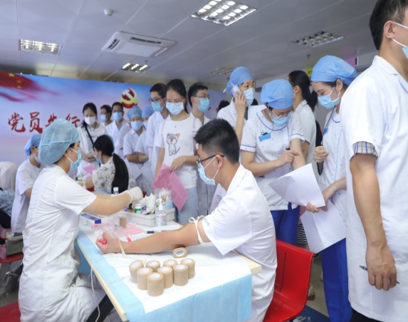 为纪念中国共产党成立99周年,7月1日下午,医院组织开展“党员先行做表率,无偿献血践初心”主题党日活动。共有121名员工参加献血,献血总量达28300毫升。