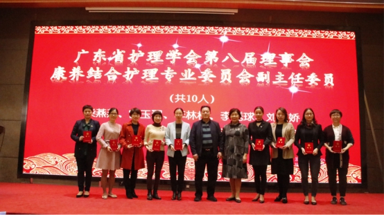 会上,广东省护理学会周丽华秘书长宣读康养结合护理专业委员会的通令,正式聘任108名委员为专委会成员。在全场热烈的掌声中,成守珍理事长、周丽华秘书长、彭康副院长、周瑾主任委员为来自全省97个医疗单位的委员们颁发聘任证书。