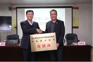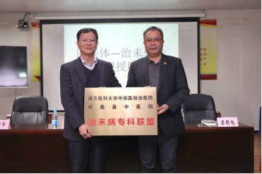 开班仪式上,我院李爱民院长与怀集县中医院院长梁朝旭代表双方就成立医联体、治未病科专科联盟进行签约和授牌。