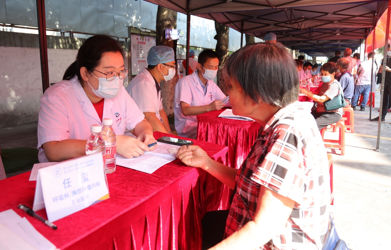 我院党委委员、神经医学中心兼神经外科主任陈陆馗教授、针推康复科主任周国平教授、骨伤科学术带头人汪青春教授、肝病科副主任陈逢生、心血管科副主任医师薛进平、脑病科副主任医师林煜、神经外科副主任医师袁淮涛、呼吸科/胸部肿瘤内科主治医师任玺、神经外科主治医师张建锋、针推康复病区护理单护士长丁玲英、脑病科护理单元副护士长李晓红、外科第一护理单元副护士长邓榆姝、针推康复科医师陈伟明等专家参与了义诊活动,为鹤山当地群众的健康把脉。