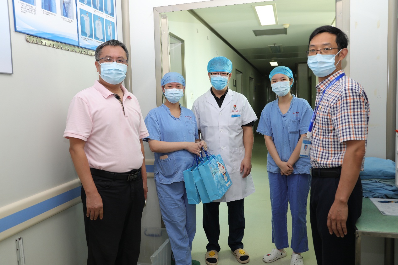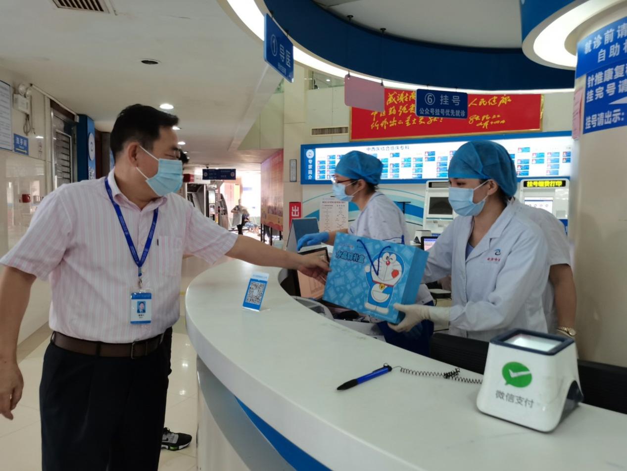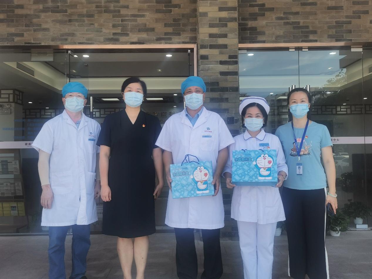 6月11日上午,我院工会开展“水晶一夏,‘粽’是安康”端午节慰问活动,由李爱民院长、皮玲副书记、潘清川副院长、朱晓光分管院领导带队,为战斗在一线的工作人员送去“水晶粽”节日慰问品。