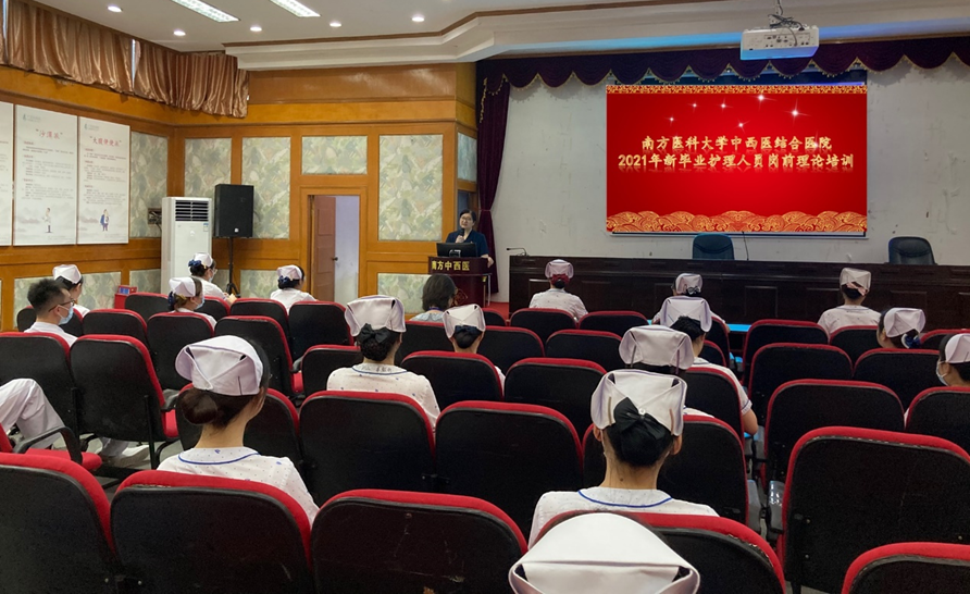 为促进新毕业护理人员对医院文化、规章制度、基础理论知识及中医、西医基础操作等的掌握,提高护理人员的业务素质及综合能力,让她们能够更快、更好的融入南方中西医大家庭,我院护理部于7月8日开始组织本年度新毕业护理人员岗前理论知识培训。