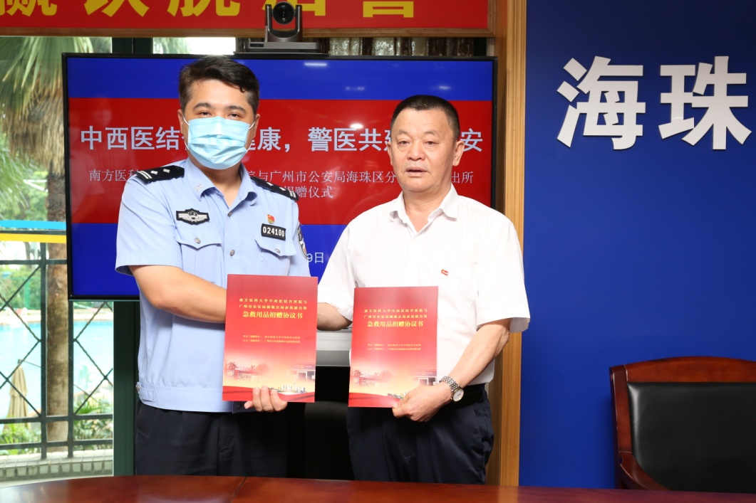 为关心关爱民警的身体健康,提升应急救治水平,密切警医共建,南方医科大学中西医结合医院向广州市公安局海珠分局赤岗派出所赠送半自动体外除颤器(AED)等急救用品。7月29日上午,捐赠仪式在赤岗派出所举行,医院党委书记严冬、党委副书记皮玲、相关科室负责人,赤岗派出所所长冯荣炜、教导员卢维锋、副所长许骋和林学宜及民警参加。