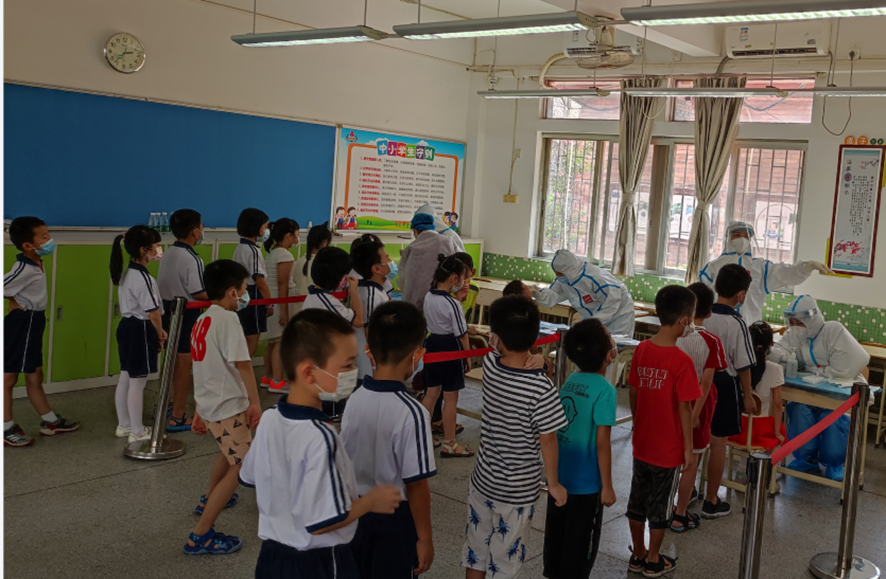 赤岗为了落实海珠区教育局《2021年秋季开学各级各类学校核酸检测工作方案》为了让孩子们能够顺利开学,在接到任务后,马上向我院请求支援,我院立即派出了6名工作人员投入到开学前保驾护航工作中。