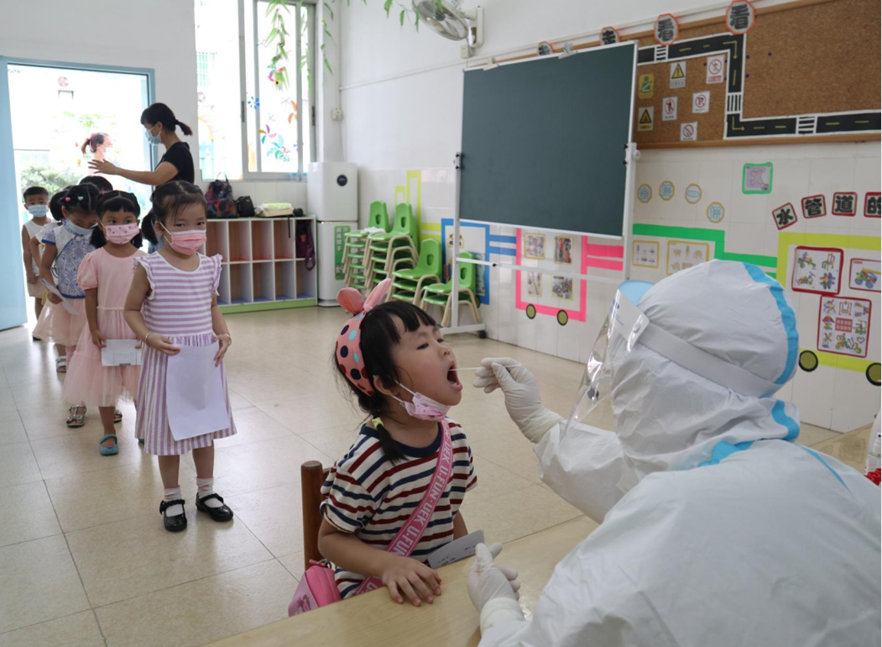 8月29日,我院共派出2组共10名护理人员,进入校园,为赤岗东小学、我院幼儿园共计1000余名师生,进行开学前核酸检查工作,为师生撑起防疫“保护伞”。