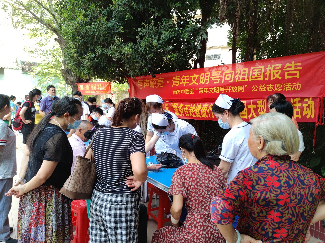 9月17日上午,我院在2021年“服务百姓健康行动”全国大型义诊活动周之际,组织开展“青年文明号开放周”公益志愿活动,来自医院肝病科、针推康复科、急诊科、骨伤科等青年文明号集体的号手,与志愿者一起走进赤沙公园,11名青年医务工作者共为63名街坊的健康办实事。