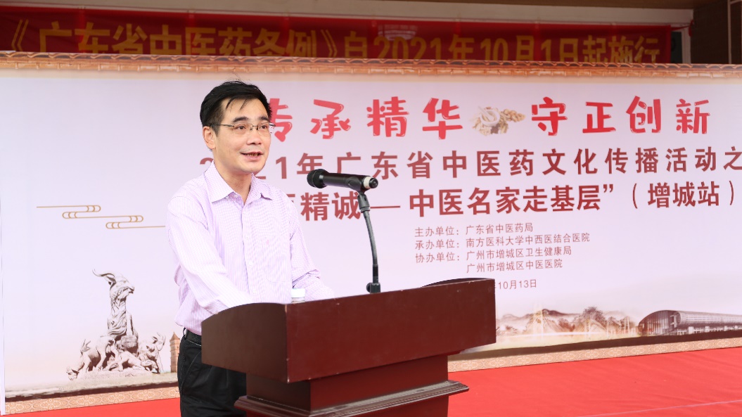 广东省中医药局副局长柯忠、南方医科大学中西医结合医院院长李爱民、副院长彭康、增城区卫健局副局长李志武、增城区中医医院院长杨武斌等领导、专家及嘉宾出席了本次活动。