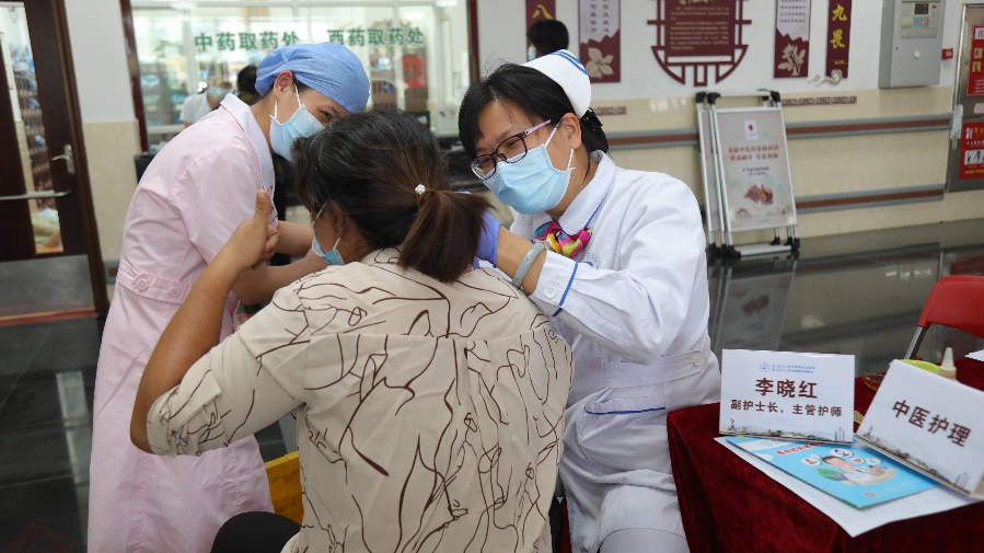 脑病科护理单元副护士长李晓红提供耳穴贴豆中医护理服务