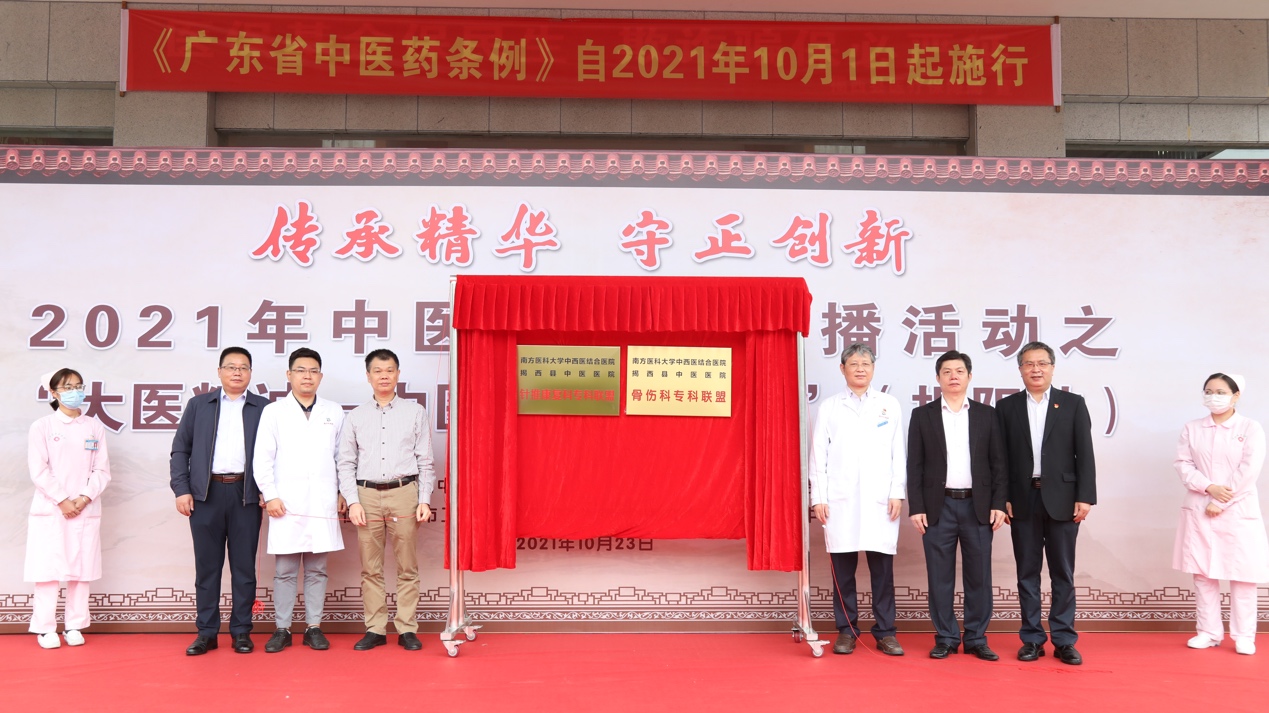 随后,南方医科大学中西医结合医院院长李爱民和揭西县中医医院院长刘良燕为针推康复科、骨伤科专科联盟建设举行签约仪式,揭阳市卫健局中医科科长袁杰群、揭西县卫健局副局长王继勇、南方医科大学中西医结合医院针推康复科主任周国平教授、骨伤科徐楚江主任医师参与揭牌仪式。