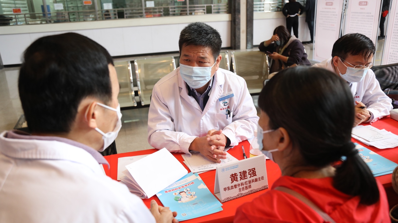 后来,患者来到现场,甲乳血管外科/肛肠科副主任黄建强为他检查后,分析这可能是一个退化性的良性肿瘤,但需要尽快就医,完善各项检查,明确肿瘤性质,动手术切除。“你要尽快做检查,动手术,不能再拖了!”黄建强副主任强调。