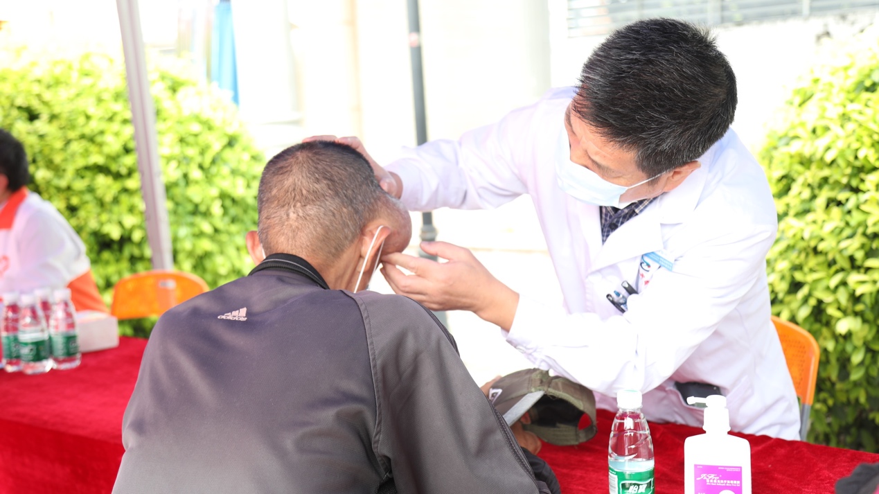 在义诊现场,有一项极具中医特色的服务,尤其受群众喜爱。这就是由脑病科护理单元副护士长李晓红为老百姓提供的耳穴刮痧、耳穴贴豆等特色中医护理服务。