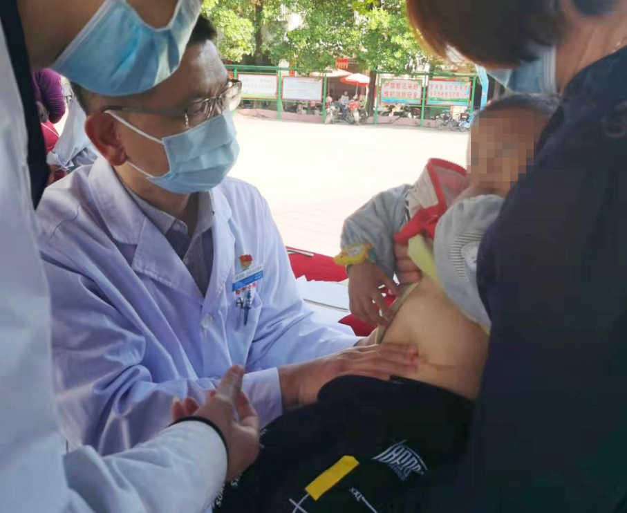 南方医科大学中西医结合医院脾胃病科(消化内科)主任张卫民为小患者做检查