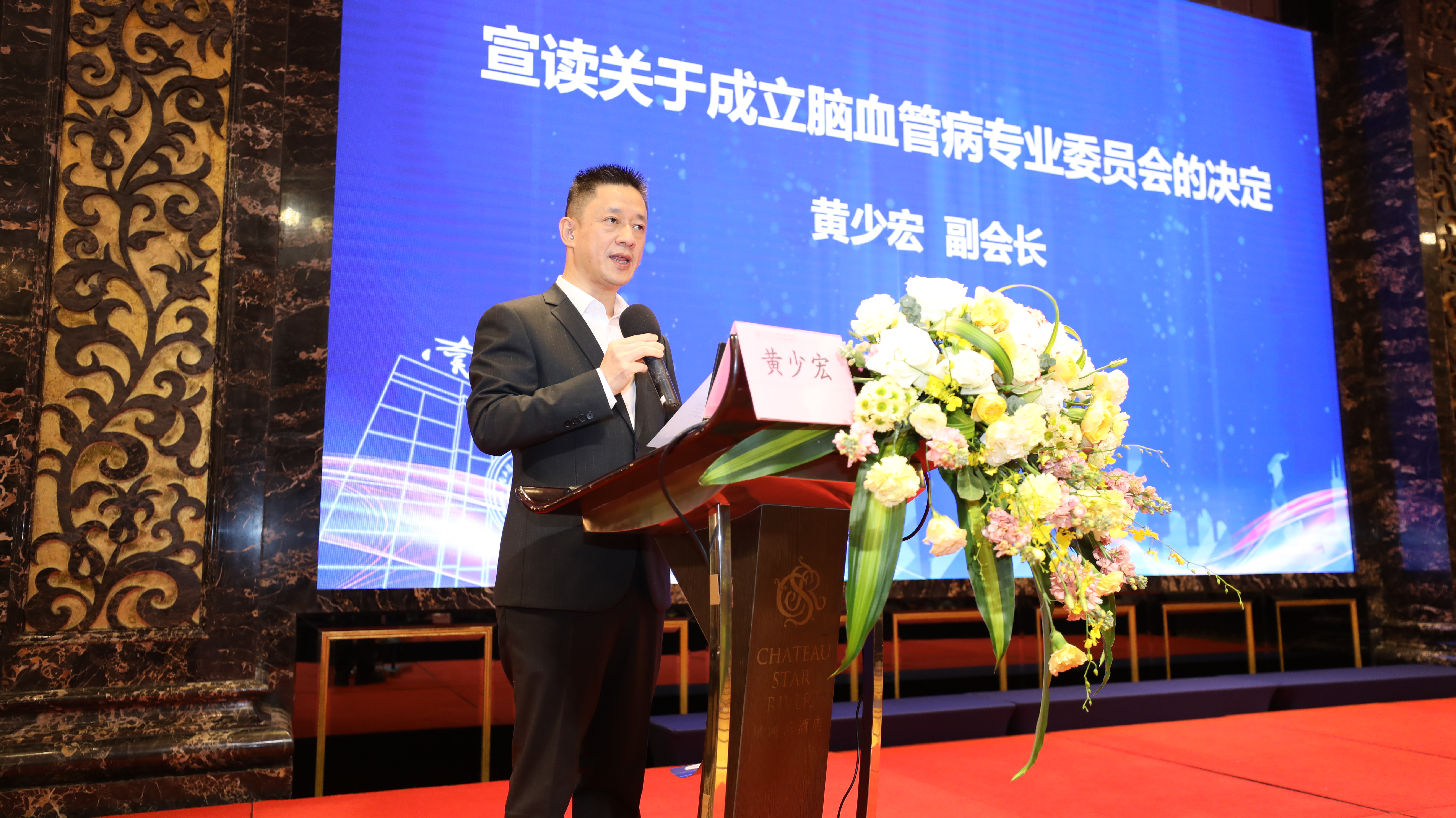 黄少宏副会长宣读《关于同意成立广东省医学教育协会脑血管病专业委员会的批复》
