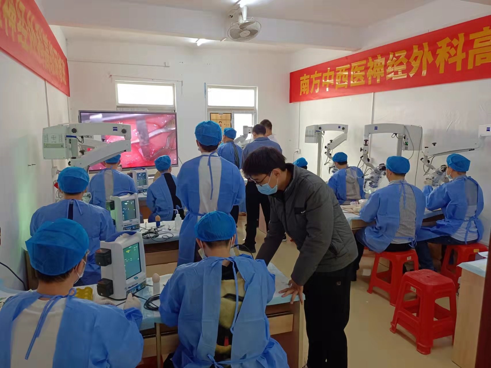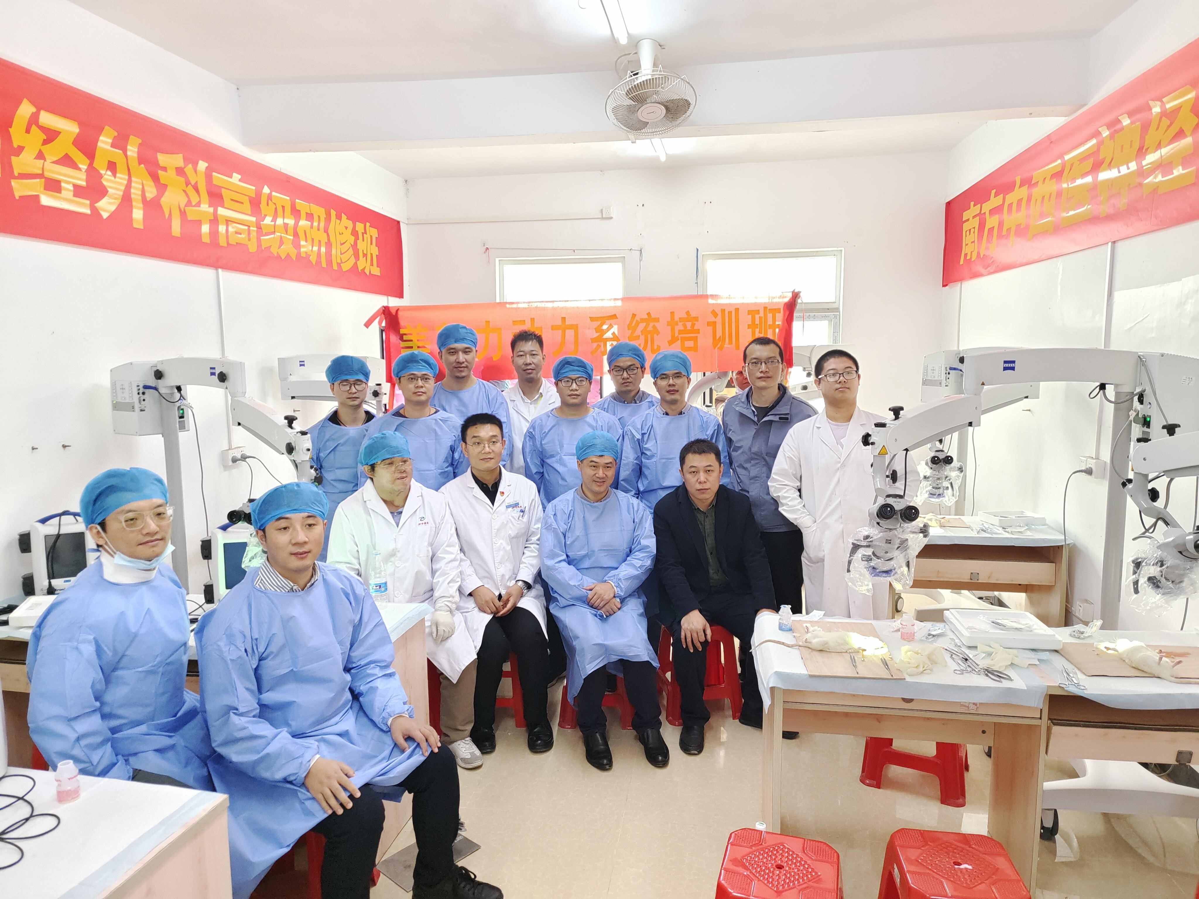 12月5日,南方中西医神经外科高级研修班在我院开班,内容包括显微血管搭桥技术培训和开颅动力系统培训,广东省内外十余名神经外科医生参加培训,陈陆馗教授亲自示教和指导,培训班为学员准备了充足的大鼠、牛骨、显微缝合线和手术显微镜,供大家训练。本次研修班以培训实操为目标,为青年医生掌握显微外科操作基本技能提供规范化的讲解。