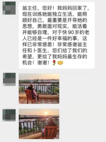 “你们给了我们希望,更给了我妈妈生存的机会,能活着并能够自理,对于快90岁的老人已经是一件很幸福的事,非常感恩!” 王阿婆的女儿十分感激专家组。