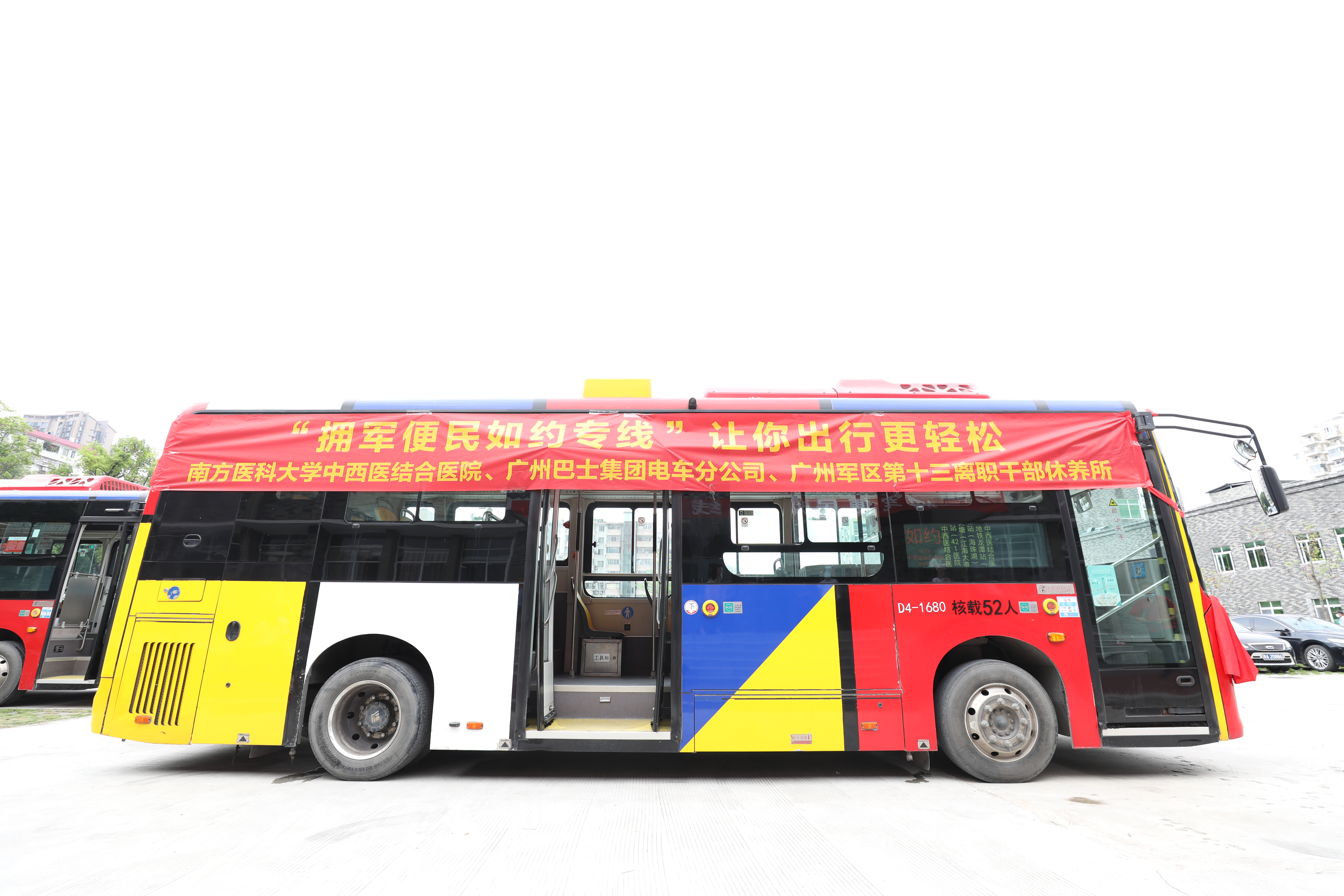 今年是中国人民解放军建军95周年,医院积极沟通海珠区江海街道、广州巴士集团电车分公司、广州军区第十三离职干部休养所,为方便军休所人员出行及群众就医,量身定制的一条便民公交专线,线路总站设在南方医科大学中西医结合医院。