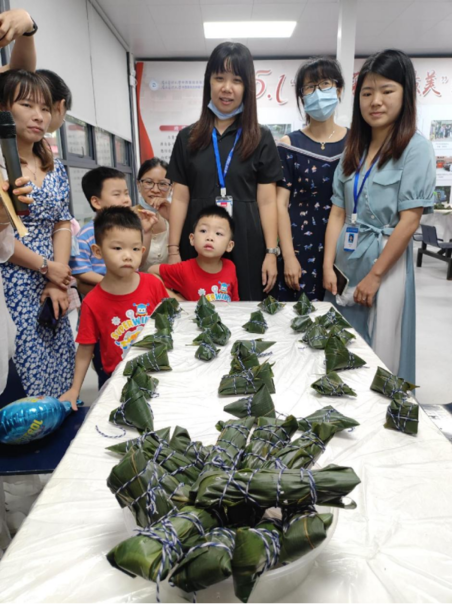 下午三点,员工及其家属、孩子们齐聚活动现场,笑语喧腾,热情高涨,在老师的指导下大朋友、小朋友们纷纷认真学习包粽子。粽叶在大家的手中飞速旋转,卷粽叶、填糯米、打绳结,有的一气呵成,洁白的糯米瞬间就被包进粽叶中,变成了一个个棱角分明的粽子,有的已经开始当起了“小老师”,有的包出别出心裁的粽子,还不忘展示一番,迎来满堂欢笑。