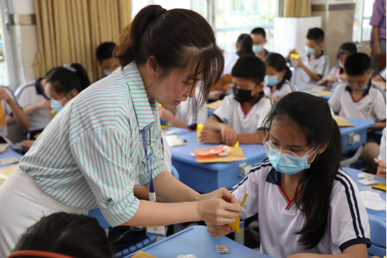 为了让学生们充分感受并体验到中医药文化,张蕊和钟一萍还带来了许多材料,她们带着学生们一起制作中药护眼眼罩,把课堂气氛推向了高潮。