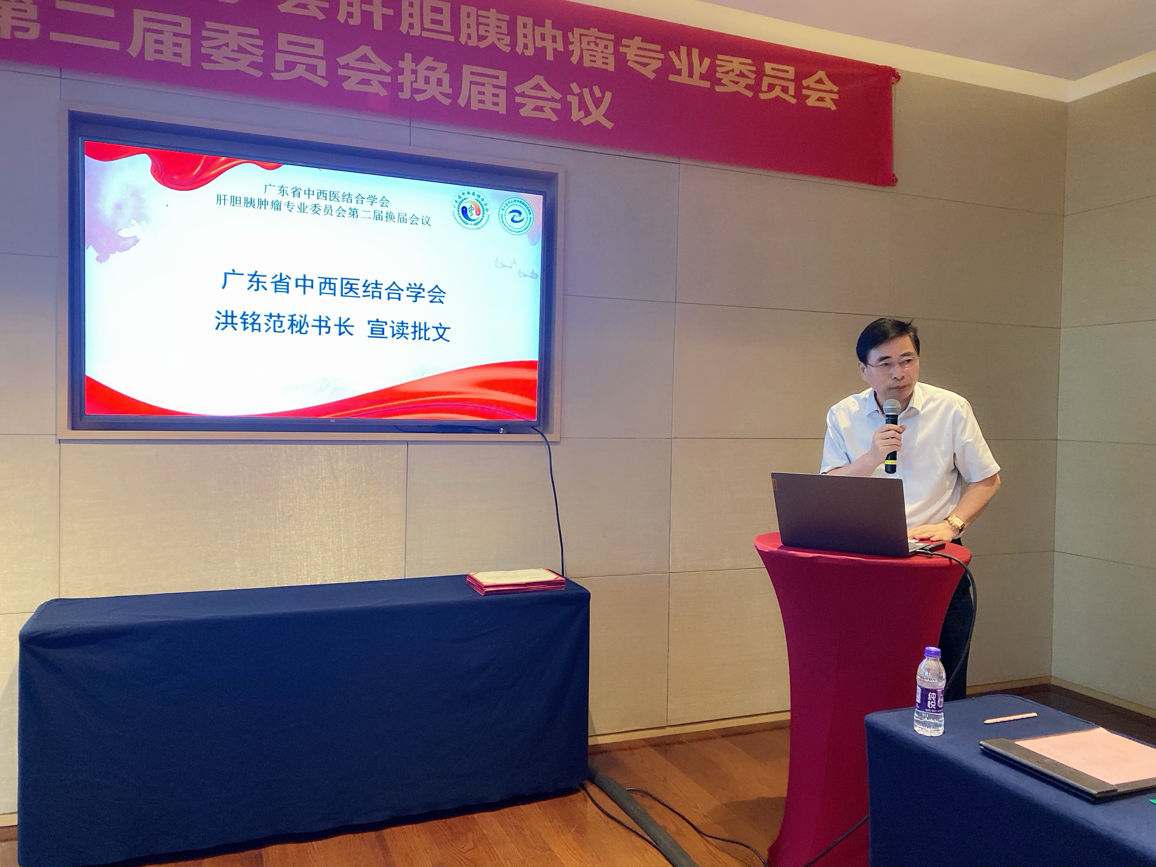 广东省中西医结合学会洪铭范秘书长宣读《广东省中西医结合学会肝胆胰肿瘤专业委员会换届申请的批复》