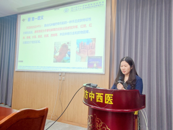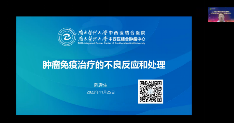 第二环节:由中西医结合肿瘤护理专业委员会主任委员、南方医科大学中西医结合医院护理部主任周瑾主任授课《如何发挥中医专科护士在中西医结合肿瘤护理中的作用》;由南方医科大学中西医结合医院肝胆胰脾肿瘤内科陈逢生副主任分享《肿瘤免疫治疗的不良反应和处理》。