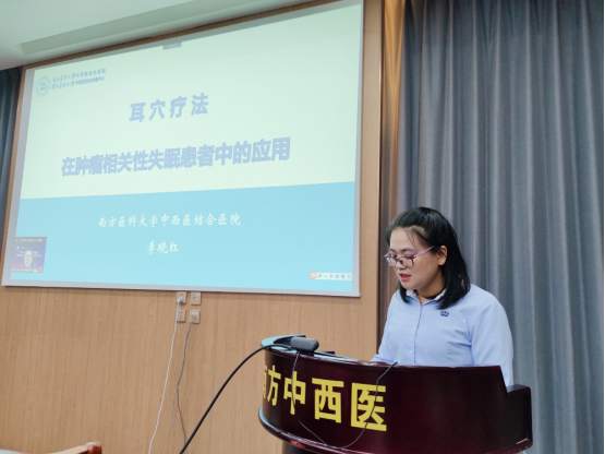 第四环节:广东省中医院内三科护士长吴巧玲、南方医科大学中西医结合医院外四科护士长盛小燕、肿瘤三区护士长吴秀琼、肾病科副护士长、全国中医骨干人才李晓红分享了腕踝针在肿瘤患者爆发痛中的应用、结直肠癌术后尿潴留的中西医结合护理、中医外治技术在手足综合征中的临床应用、耳穴治疗在肿瘤失眠患者中的应用等宝贵临床经验。