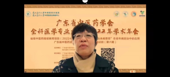 广东省中医药学会何弈婷秘书长对大会的召开表示热烈地祝贺,广东省中药学会全科医学专委会虽然成立的时间不长,但我们专委会的各位同道们在主委朱晓光教授的带领下,认真履行专委会的职责,切实做好学术交流、继续教育、人才培养等多项工作。通过全科医学相关专家的密切交流,较好地推动了大家的共同学习。当前中医药事业也迎来了最利好的时机,衷心地希望我们全科医学的工作者,不忘初心,充分利用我们专委会的学术交流平台,在做好疫情防控的情况下,努力做好线上线下的学术交流。期待的通过大家的努力,做出我们专委会的特色和品牌,充分地发挥中医药的优势和特点,为推动我省全科医学的发展贡献我们的力量。