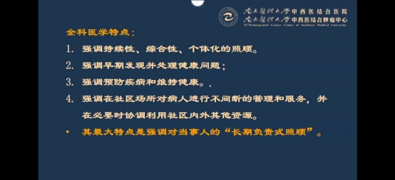 黄建龙教授分享中医全科的疆与界,从以下四个方面与大家开展学术交流:一是中医全科医学的疆与界;二是以分享案例的形式看中医全科医疗服务的疆与界;三是从中医史看中医全科六位一体的疆与界;四是中医全科疆与界的思考(预防、治疗、保健、康复、优生优育、延年6个方面)。