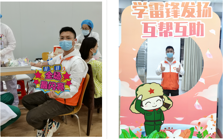 “我非常荣幸能在学雷锋活动月参与献血活动,用自己的热血帮助他人”, 从18岁开始连续6年献出热血,并荣获“全国无偿献血奉献奖金奖”表彰的2021级中医专硕学生谢子葳表示,作为雷锋同志的家乡人,能贡献自己的绵薄之力是一件很荣幸的事情。献完血后,谢子葳就地做起了志愿者。