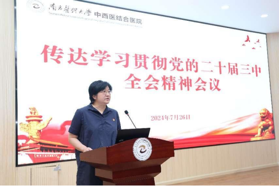 7月26日,南方医科大学中西医结合医院召开专题会议传达学习贯彻党的二十届三中全会精神,部署医院学习宣传贯彻工作,会议由医院党委副书记皮玲主持,全体院领导、党支部书记、中层干部参加会议。