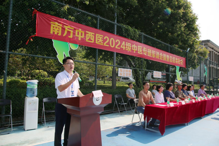 8月8日上午,南方医科大学中西医结合医院在医院篮球场举行2024级中医专硕(仝小林院士态靶辨治特色班)军训会操暨总结表彰会。海珠区委常委、区人民武装部部长涂勇,南方医科大学中西医结合医院党委副书记皮玲、副院长孙晓敏、医院机关相关科室负责人、急诊科负责人、专业辅导员团队以及2024级中医专业型硕士研究生参加会操大会。大会由科教科(事业发展部)科长邢学锋主持。