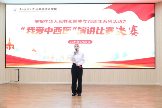 9月26日,南方医科大学中西医结合医院庆祝中华人民共和国成立75周年系列活动之“我爱中西医”主题演讲比赛决赛在医院学术会议厅举行。