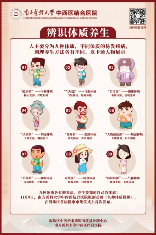 南方中西医陈旭坚书记、广东省名中医彭康教授应邀出席活动启动仪式。《九种体质辨识》原创动画在仪式上首次亮相,由海珠区中医治未病服务质量控制中心与南方中西医联合发布,吸引了大量市民驻足观看。陈旭坚书记向大家介绍了创作该动画的用意。该动画依托中医华夏之旅十人旅行团的背景,借助旅行团成员的经历及其各自的症状与体质特征,以喜闻乐见的动漫形式为广大百姓普及“九种体质”的中医养生常识。