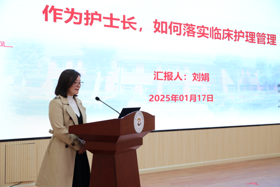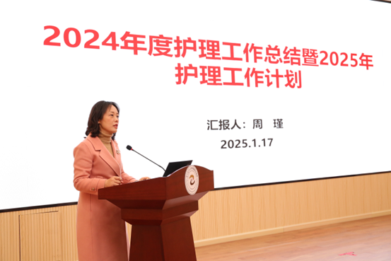 紧接着,三名总护士长依次上台阐述2025年度工作计划。廖荣荣总护士长把握“质量、安全、服务”和“四个避免”的思路,计划从护理质量指标管理、护理质量与安全、深化优质护理服务等方面开展工作,推行重点隐患“1+3 ”管理模式和服务质量4个“零容忍”。黄波总护士长聚焦中医护理工作、专科护士管理、继续教育项目管理三个板块,围绕“学者-学缘-学科”体系,旨在打造名护品牌和专科护士团队,建立MDT护理专家库,实现中医护理的传承与创新。洪艳总护士长从人、机、物、法、环五个维度解读科室运营管理要点;以所在科室为例,强调6S精细化管理的重要性和必要性;并对实习生管理和保洁、陪护、输送管理提出明确的管理目标与切实可行的工作思路。