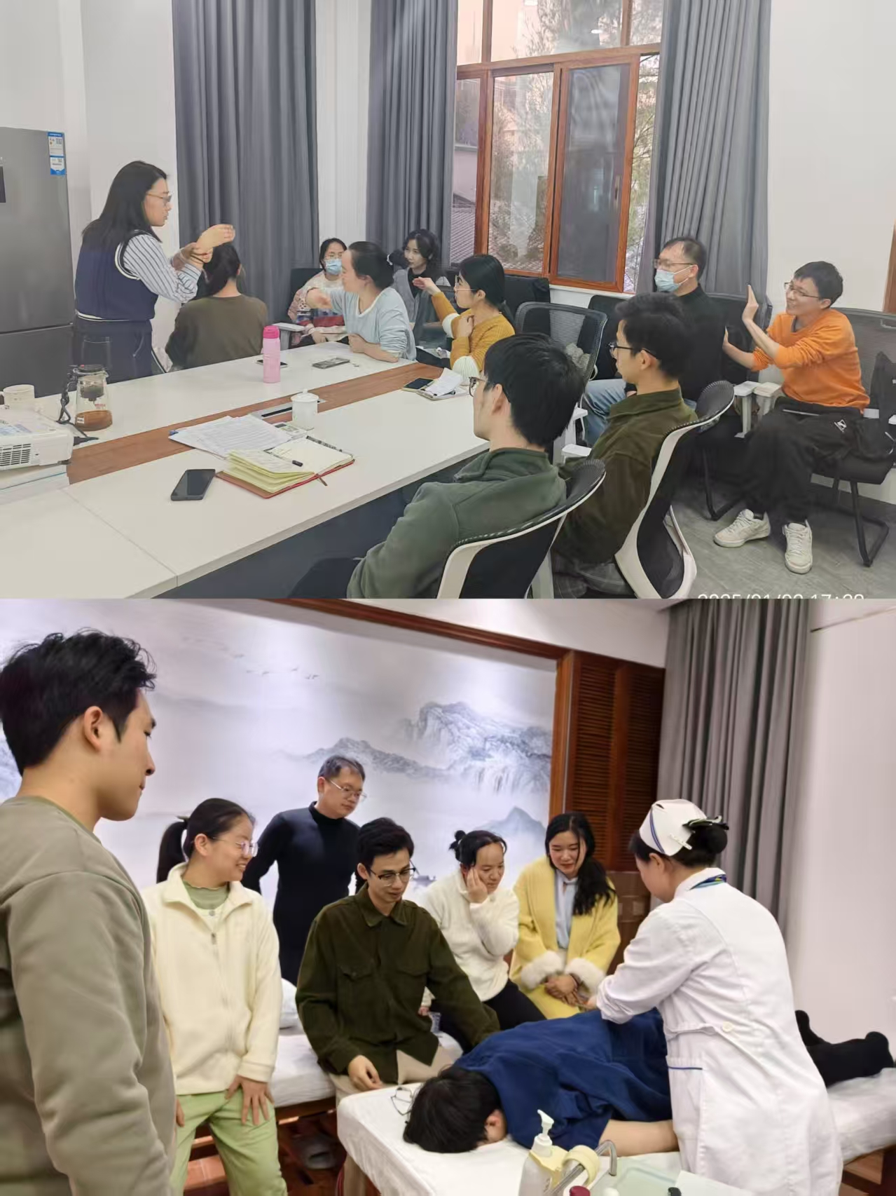 本次正脊培训班为期两个月,共23个学时,由石国君老师、南方中西医推拿科曲姗姗主任、针灸康复科杨路主任、全科医学中心钟伟丽护士长等多位资深专家担任授课教师。课程涵盖石氏正脊的历史渊源、理论基础、脊柱解剖、手法要点及临床应用等,同时包含揉拨、点穴等实践课程,以及八段锦、五禽戏等保健功法,层次丰富,内容翔实。