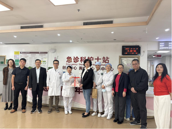 3月6日上午,院领导带领相关职能部门负责人,分组深入临床、医技、行政后勤等各个岗位,亲切慰问辛勤工作的女职工们,为她们送上节日的祝福和精心准备的慰问品。一份份香甜的蛋糕,一盒盒暖心的养生茶,传递着医院对女职工深深的敬意与感谢。本次慰问品中的养生茶由医院皮肤医学中心特别赞助,融合中医养生理念,充分彰显了医院特色学科对女性职工健康的贴心关爱。院领导每到一处,都与女职工们亲切交谈,感谢她们为医院发展付出的智慧和汗水,并勉励大家继续在岗位上绽放光彩。