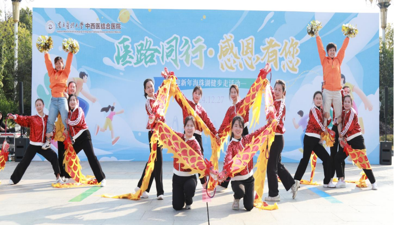 12月27日下午,冬日暖阳下一场别开生面的活动在海珠湖北广场热烈展开,活动以幼儿园老师们表演的《龙舞飞扬啦啦秀》热身舞点燃了现场气氛。这是南方医科大学中西医结合医院组织的“医路同行,感..