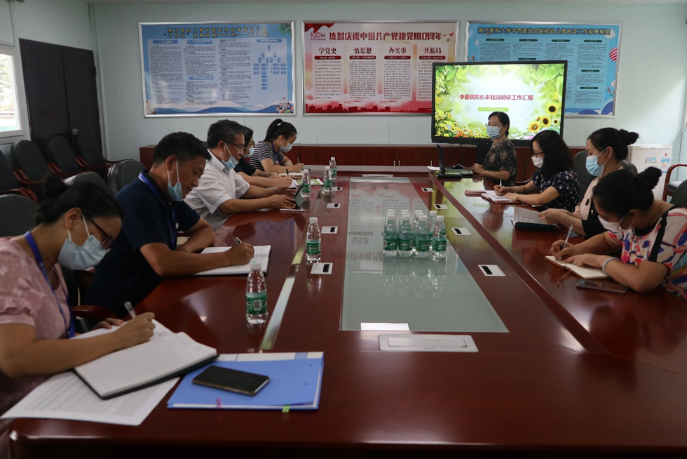 8月30日下午,医院李爱民院长、党委皮玲副书记对幼儿园发展进行调研。工会周瑾副主席、组织人事科蒋美副科长、总务科谷祥岸科长陪同调研,张晓晖园长及园行政人员参加了调研会。