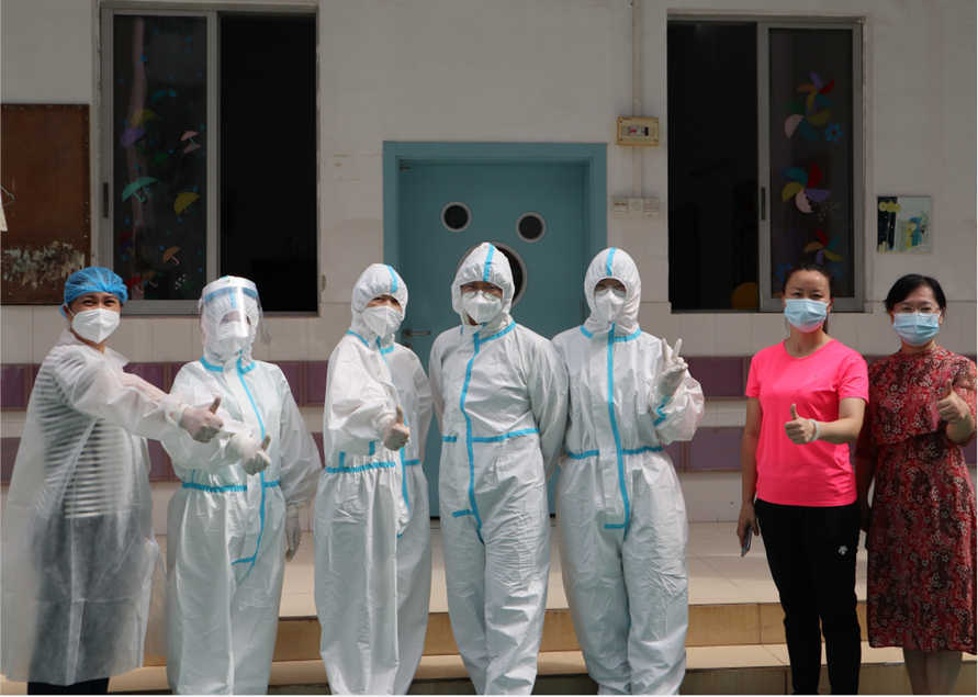 8月29日,我院共派出2组共10名护理人员,进入校园,为赤岗东小学、我院幼儿园共计1000余名师生,进行开学前核酸检查工作,为师生撑起防疫“保护伞”。
