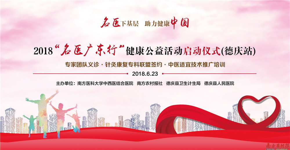 名医下基层,助力健康中国。2018“名医广东行”健康公益活动将于6月23日走进德庆县。活动包括专家现场义诊、签订专科联盟合作协议、学术交流、面向250名基层医生开展中医适宜技术培训。本次活动..