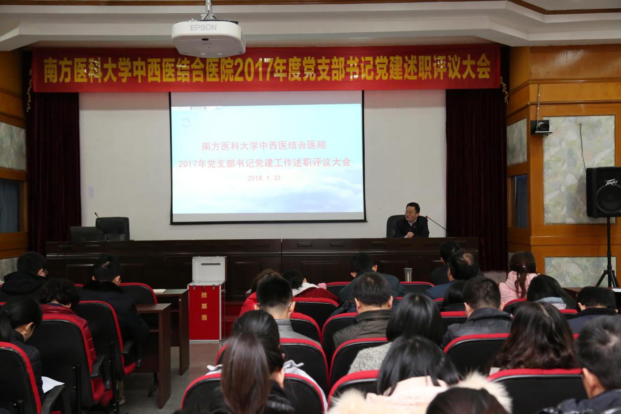 2018年1月31日下午,医院在学术会议厅召开2017年度党支部书记党建述职评议大会,全体党员、预备党员参加,会议由医院党委书记严冬主持。