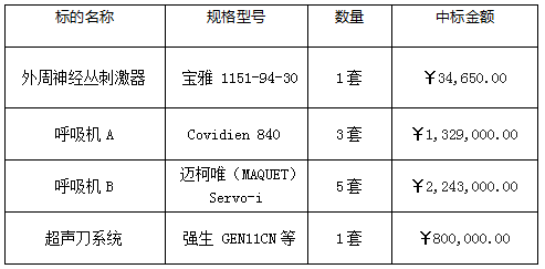 我院于2021年5月10日就项目名称:南方医科大学中西医结合医院采购医疗设备招标项目(3)(招标编号:0724-2101D84N1434)采用公开招标进行采购。现就本次采购的中标结果公告如下: