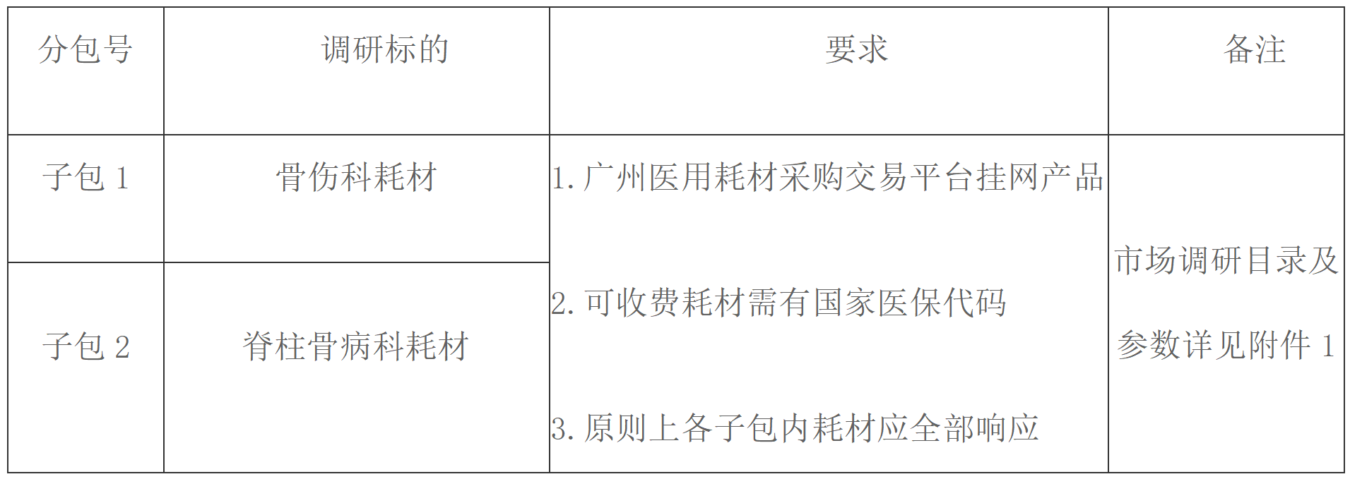 为进一步了解有关医用耗材产品的市场情况,现拟对以下产品开展市场调研,欢迎各供应商提供相关资料。本公告在南方医科大学中西医结合医院官网(http://nfzxy.com/)上公开发布(提供免费下载)。